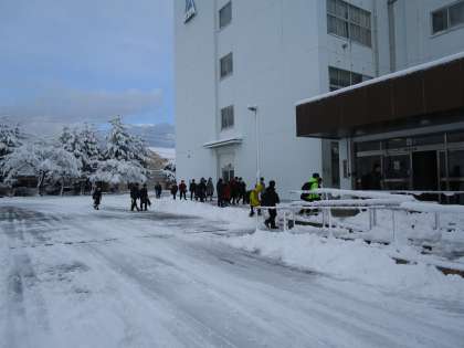 8時頃は幸い雪もやんでおり、先生方や除雪当番で通路が確保されており、安全に登校できました。