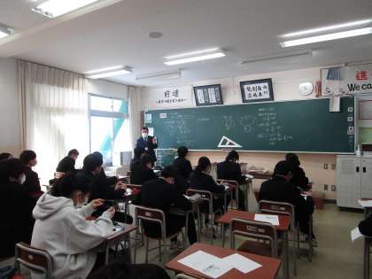 1月24日(水)4限 3年2組の数学は、「三平方の定理を円すいの問題で活用しよう」という課題で学習していました。