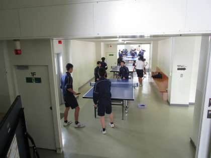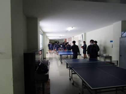 3年1組、2組保健体育男子 公開日 2024/01/25 更新日 2024/01/25 3学年 1月24日(水)5限 3年1組、2組男子の保健体育は、廊下で卓球を楽しんでいました。先生も一緒にラリーや試合を楽しんでいました。もうしばらくの中学校での保健体育を楽しんでいます。