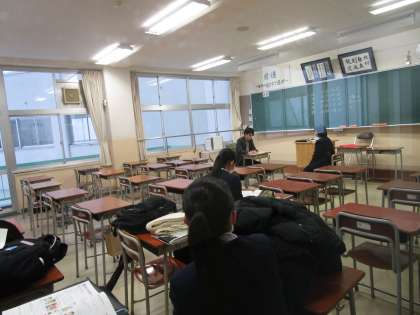 3年生 推薦面接練習 公開日 2024/01/25 更新日 2024/01/25 3学年 1月24日(水)放課後 2月13日(火)の県立推薦選抜等に向けての面接練習をしていました。各自のよさが伝わるよう練習に精一杯取り組んでいます。