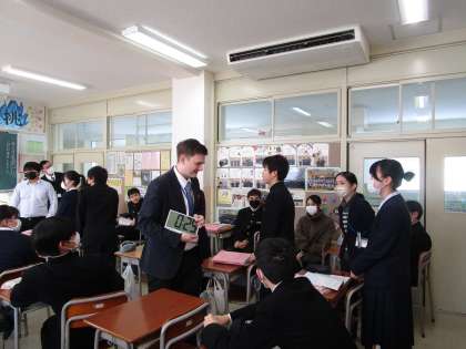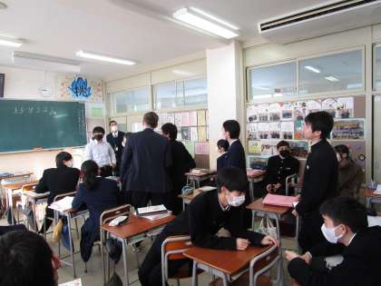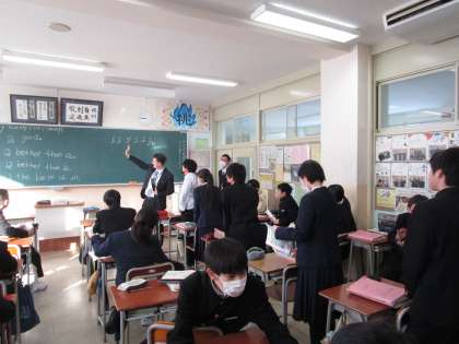 2年1組 英語 公開日 2024/01/25 更新日 2024/01/25 2学年 1月25日(木)1限 2年1組の英語はALTの先生の授業でした。列ごとにリレー方式で時間も競い、比較級、最上級を使った英語の学習を楽しくしていました。