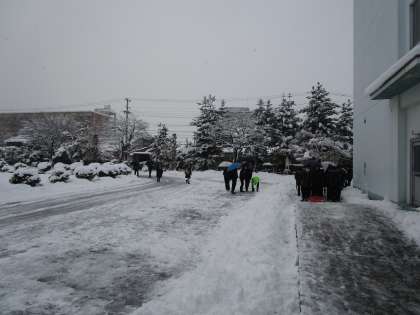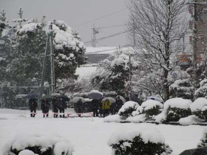 降雪の中の登校でした。今日の午前中までの雪のようですが、冬場の登下校、安全に気を付けてください。