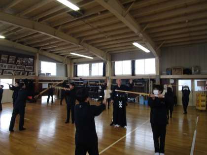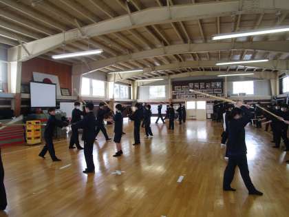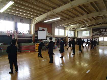 1学年 保健体育 剣道 5時間目 公開日 2024/01/26 更新日 2024/01/26 1学年 剣道の授業の5回目となりました。いよいよ竹刀をもって基本打突(面・小手・胴)の学習をしました。みんな一生懸命取り組んでくれているので高島先生も熱を入れて指導いただいています。寒い中、ありがとうございます。残りあと2回となります。頑張りましょう。