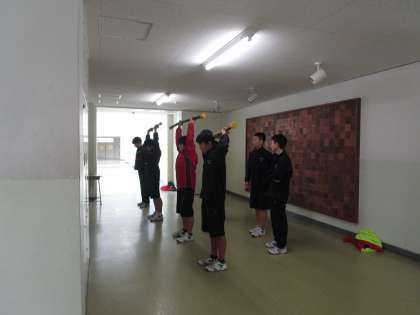 休日の部活動 男女陸上競技部 公開日 2024/01/27 更新日 2024/01/27 部活動 1月27日(土)午前 男女陸上競技部が廊下で練習していました。ハードルくぐり、シャフトを使って体幹を鍛えていました。