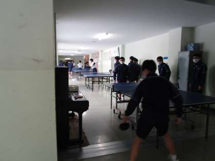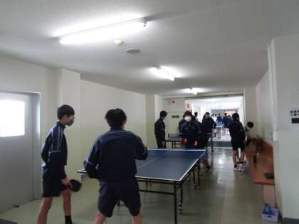 3年1、2組男子保健体育 公開日 2024/01/29 更新日 2024/01/29 3学年 1月29日(月)1限 3年1組、2組の男子が廊下で卓球を学習していました。ゲーム形式で勝敗やラリーを楽しんでいました。
