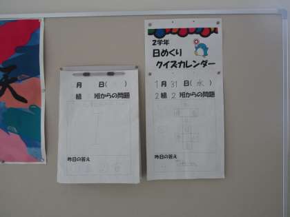 昨日から2年生日クイズクイズカレンダーが始まっています。朝、休み時間、放課後、隙間時間にチャレンジしてみましょう。
