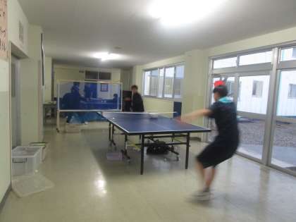 2月1日(木) 廊下で男子卓球部がメニューに沿って練習に励んでいました。