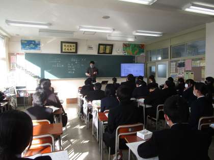 1年4組 理科 公開日 2024/02/07 更新日 2024/02/07 1学年 2月7日(水)1限 1年4組の理科は、確認テストの解説をしていました。問題に対して適切に答える方法について説明されていました。