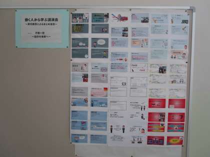 1学年 働く人に学ぶ実行委員によるまとめ集会 公開日 2024/02/08 更新日 2024/02/08 1学年 進路実行委員会が先日行われた「働く人に学ぶ集会」のまとめをパワーポイントにしてまとめて学年掲示板に掲示してくれました。