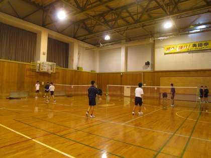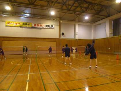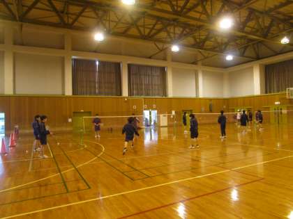 3年1組、2組男子保健体育 公開日 2024/02/09 更新日 2024/02/09 3学年 2月9日(金)1限 3年1組、2組男子の保健体育は、体育館でバドミントンの学習をしていました。ゲームの中で攻防を思いきり楽しんでいました。
