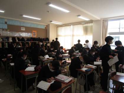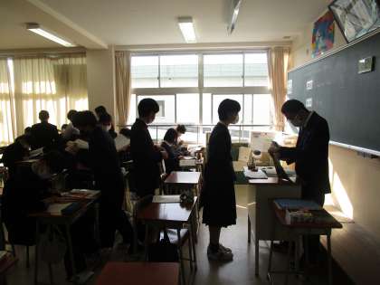 2年1組 英語 公開日 2024/02/09 更新日 2024/02/09 2学年 2月9日(金)1限 2年1組の英語は、生徒が前に出てきて先生と対話していました。他の生徒はワーク等をしたり、友達と教え合ったりしていました。