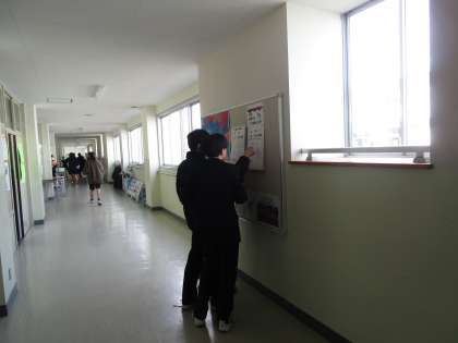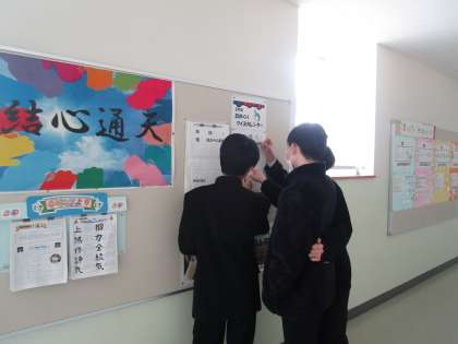 男子生徒3人が日めくりカレンダーの問題を解いていました。各クラス班ごとに問題が作成され、毎日出題されています。