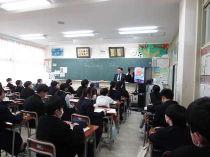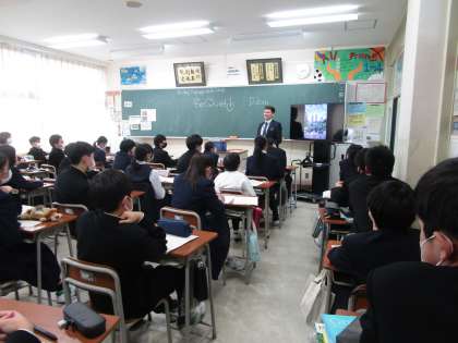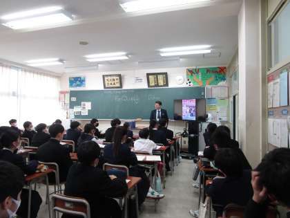 1年4組 英語 公開日 2024/02/09 更新日 2024/02/09 1学年 2月9日(金)6限 1年4組の英語は、ALTの先生がドバイに旅行に行った際の写真等を見ながら英語で説明を聞いていました。日本にはない風景等興味津々に説明に聴き入っていました。