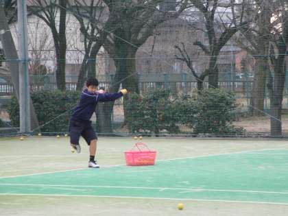 強烈な球出しをレシーブしていました。球出しの生徒は強いボールを繰り出していました。