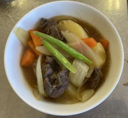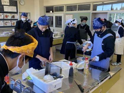 1年2組調理実習 公開日 2024/02/14 更新日 2024/02/14 1学年 2月13日(火) 今日は肉じゃがを作りました。いもや野菜、牛肉等の下ごしらえや調味料の計量など、これまでの調理実習より工程がたくさんあり、煮込む時間が少なくなりましたが、自分の担当の作業を手際よく進めていました。 写真は、一番最初に盛り付けが完成した班の肉じゃがです。