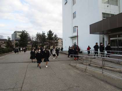 朝の登校の様子 公開日 2024/02/14 更新日 2024/02/14 学校だより 2月14日(水) 季節外れの気温が昨日から続いています。風が少しありますが、生徒が元気に登校しています。校長先生はじめ教職員が出迎え挨拶を交わしています。