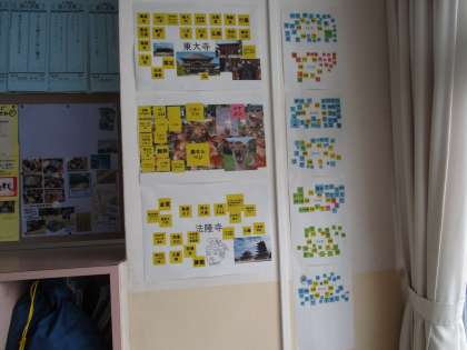 事前学習で奈良県や奈良のお寺のイメージが掲示されていました。