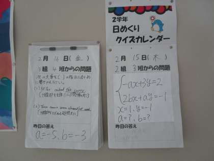 今日は数学の問題と英語の問題でした。
