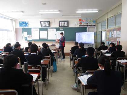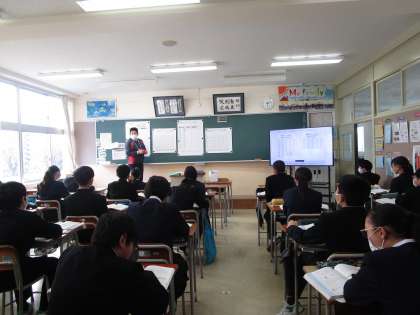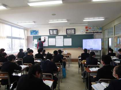 2月16日(金)6限 1年2組の数学は、度数分布について具体例をあげながら学習していました。