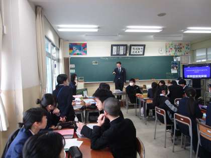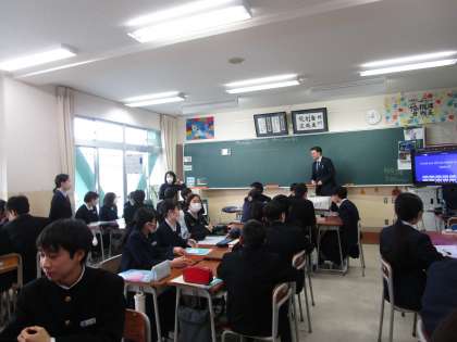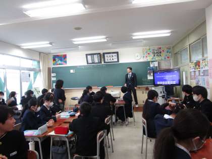 2年5組 英語 公開日 2024/02/19 更新日 2024/02/19 2学年 2月19日(月)1限 2年5組の英語は、ALTの先生と一緒に学習していました。グループでホワイトボードに記入し、ALTの先生と対話して学習を深めていました。
