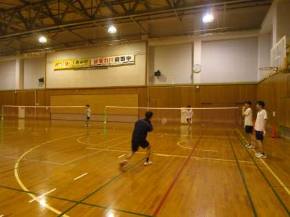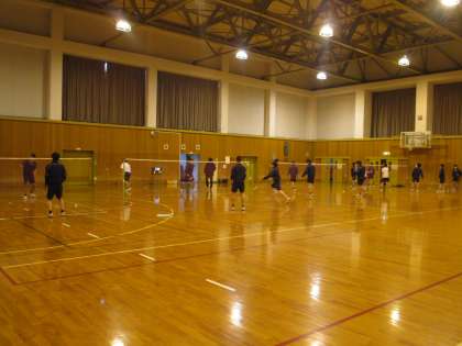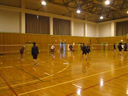 3年1組、2組男子保健体育 公開日 2024/02/21 更新日 2024/02/21 3学年 2月21日(水)5限 3年1組、2組男子保健体育は体育館でバドミントンをしていました。受験に向けて運動も少ないので元気はつらつ頑張っていました。中には半袖の生徒もいました。