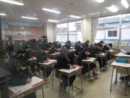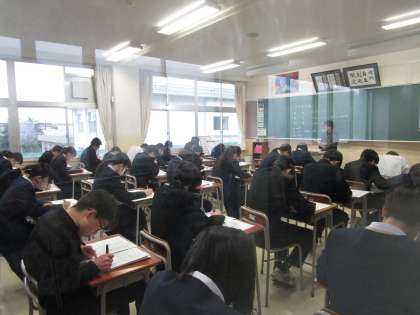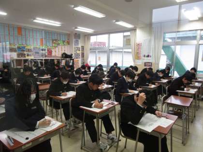 2月22日(木)1限 2年生が学年末考査1日目に挑んでいます。