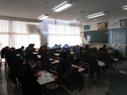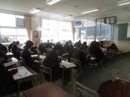2月26日(月)1限 1年生の学年末考査2日目の様子です。