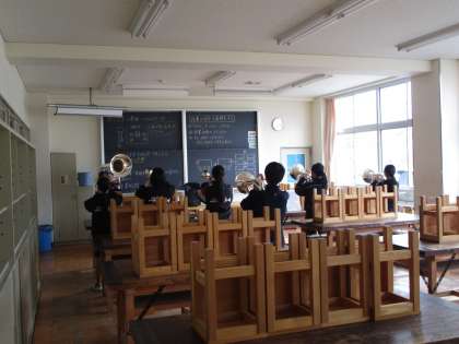 部活動再開 吹奏楽部 公開日 2024/02/27 更新日 2024/02/27 部活動 2月27日(火)放課後 技術室で吹奏楽部が練習していました。リーダーの指示で主体的に練習していました。3月30日(土)奥田中学校体育館で定期演奏会を行う予定です。お楽しみに。