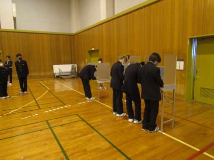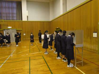 立会演説会が終わり、投票をしています。本当の選挙と同じように実施しました。