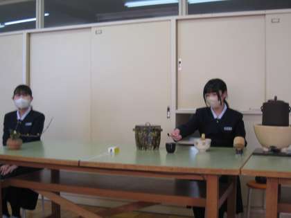 茶道部 卒業茶会 公開日 2024/03/12 更新日 2024/03/12 部活動 本日茶道部で、お世話になった3年生の先輩方や先生方をお招きし、「卒業茶会」を開催しました。1,2年の部員から3年生に感謝の言葉を伝えました。最後は3年生にもお茶をたててもらいました。ありがとうございました。