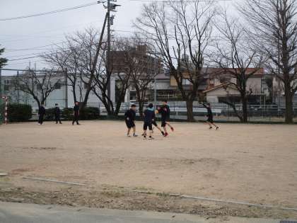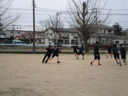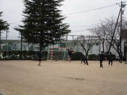 3月19日(火)放課後 ハンドボール部がハンドボールコートで攻防の練習をしていました。