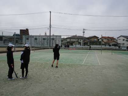 女子ソフトテニス部も久しぶりの打ち合いを楽しんでいました。