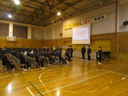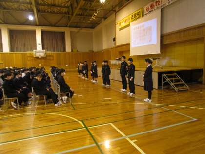 2学年 まとめの学年集会 公開日 2024/03/21 更新日 2024/03/21 2学年 3月21日(木)2限 2年生が体育館でまとめの学年集会をしていました。学年生徒会の生徒が前に出て学級目標等の振り返りや頑張れたことなどをみんなで確認し合い、温かい拍手で包まれていました。