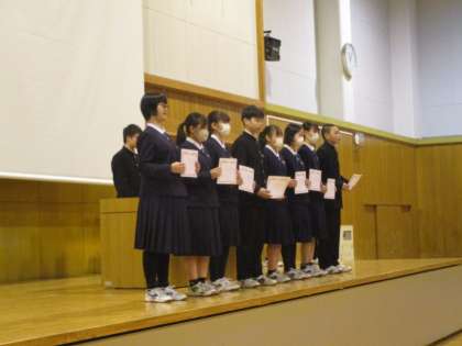 令和6年度前期生徒会役員認証・任命式 公開日 2024/03/22 更新日 2024/03/22 生徒会 後期生徒会まとめ集会後、令和6年度前期生徒会役員認証・任命式が行われました。新役員の皆さん、4月からよろしくお願いします。