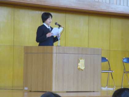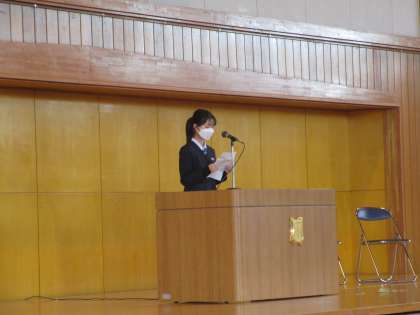 3学期意見発表 公開日 2024/03/22 更新日 2024/03/22 学校だより 各学年の代表が1年間、3学期を振り返り、貴重な体験等を通して成長できたこと、進級に向けての思いを発表しました。皆さんも成長できたこと、進級に向けて頑張りたいことを実現していきましょう。
