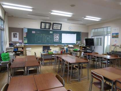 B棟1階 美術室 公開日 2024/03/23 更新日 2024/03/23 学校公開日 美術室は2つあります。美術の授業や放課後、美術部が使っています。廊下には生徒の作品や美術部員の作品が展示されています。