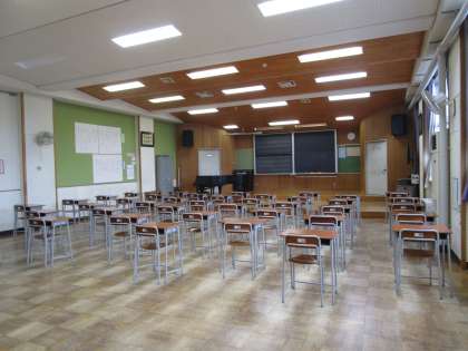 とても大きい音楽室です。音楽の授業、吹奏楽部が使用しています。