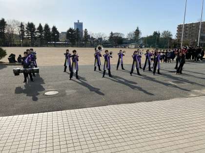 生徒玄関前では、吹奏楽部が衣装を着て演奏をしました。1年生もたくさん見学をしていました。