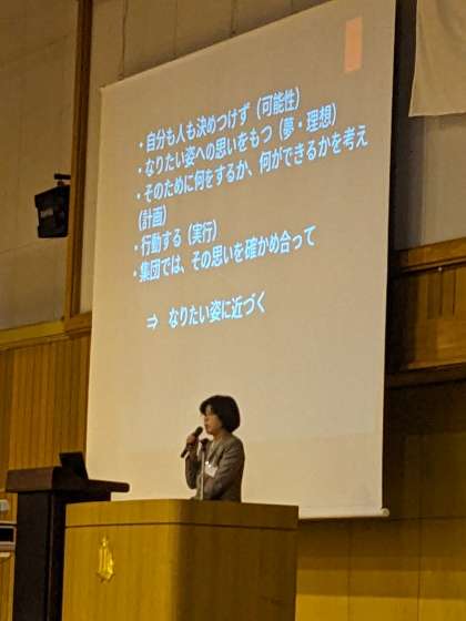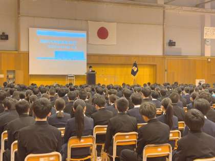 校長先生が平成以降の校舎の様子を紹介するとともに、奥中生への願いを語られました。
