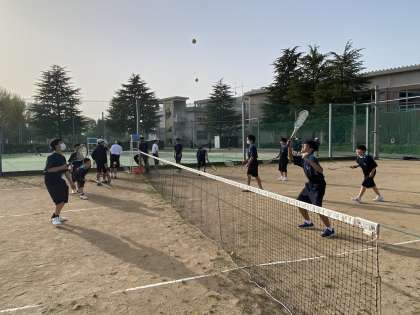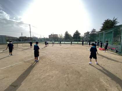 1年生 部活動体験4 公開日 2024/04/18 更新日 2024/04/18 部活動 男子ソフトテニス部は、ラケットの握り方やフォアハンドのラケット操作を教えてもらいました。教えてもらったことを活かして、ペアでボレーでのラリーを楽しんでいました。