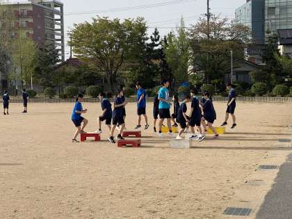陸上競技部は、ボックスやダイナマックスを使ってトレーニングをしていました。2、3年生が細かい動きまで教えてくれていました。