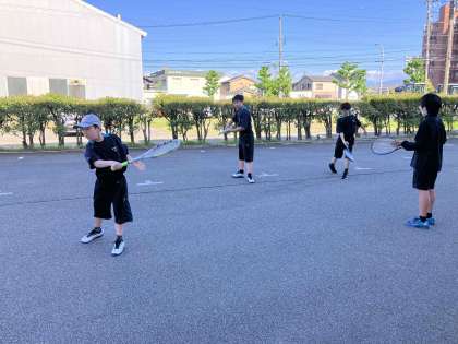男子ソフトテニス部の活動の様子 公開日 2024/05/10 更新日 2024/05/10 部活動 5月9日(木) 男子ソフトテニス部の活動の様子です。 1年生は、上級生から素振りを教わっていました。 1番下の写真は、GW中の練習試合の様子です。
