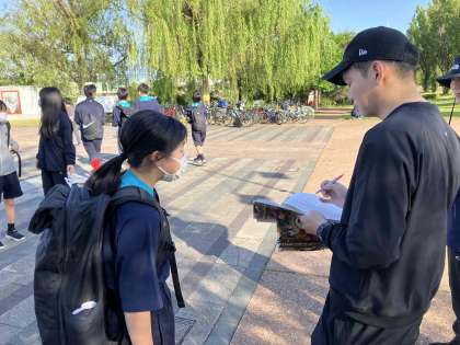 5月11日(土) 環水公園でボランティア活動がありました。 出席者は、生徒会担当者に報告していました。