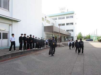 今日も、気持ちよく晴れた朝です。生徒玄関では、サッカー部が元気に挨拶運動をしていました。部活動挨拶リレーのバトンがつながっています。