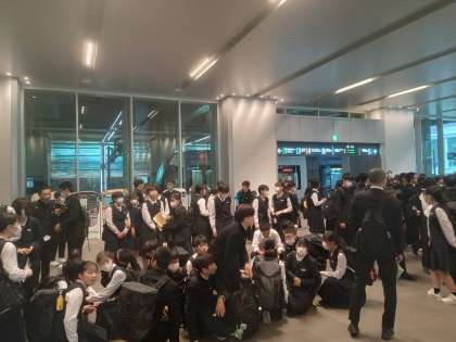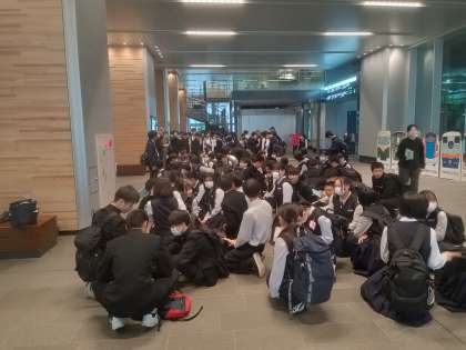 3年生は本日より修学旅行です。 富山駅にぞくぞく集合しています。 みんな笑顔で集合です。