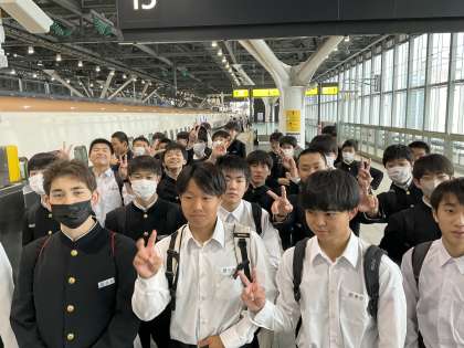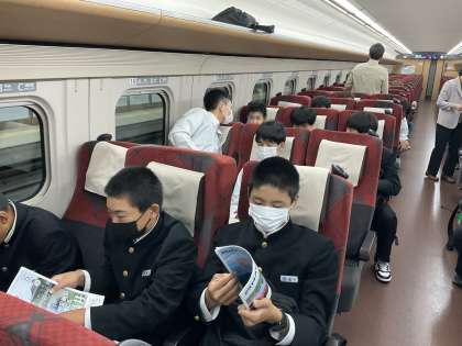 富山駅から新幹線に乗りました。八号車の様子です。 みんな楽しそうです!