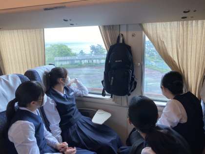 サンダーバードの車窓から琵琶湖が見えて、歓声が上がりました。