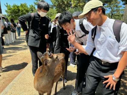奈良公園付近を見学しました。鹿の多さに驚きました。