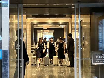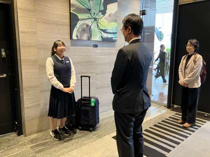 実行委員長がホテルの方にお礼の挨拶をしました。 コース別学習に出発します!