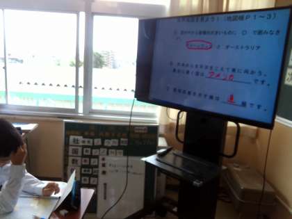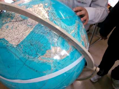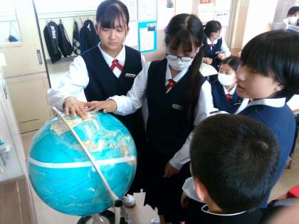 5月23日(木) 1年4組 社会科の授業 公開日 2024/05/23 更新日 2024/05/23 1学年 1限 1年4組は社会科地理的分野の授業で「地球儀と世界地図」を行いました。 問題「日本の真東にある太平洋の向かい側はどこでしょうか」 写真 上:世界地図を使うと「アメリカ合衆国」 中:地球儀を使うと「あれ、アメリカに着かない・・」 下:日本の東にあるのは「南アメリカ大陸」と学びました。